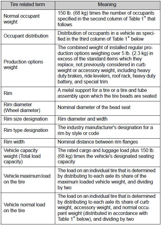 *: Table 1 ⎯ Occupant loading and distribution for vehicle normal load